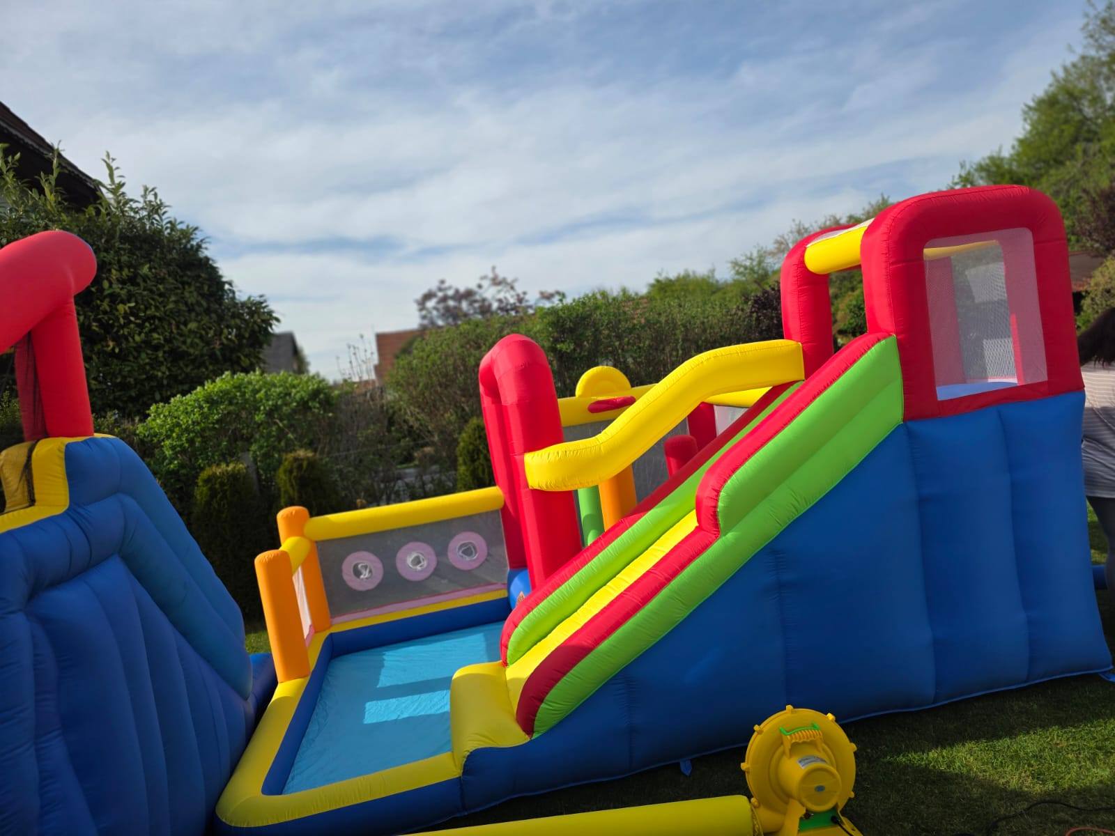Diese multifunktionale Hüpfburg bietet Kindern ein komplettes Spielerlebnis într-un singur modul: lange Rutsche, Kletterwand sowie Ball- bzw. Wasserbereich. Ideal für Kindergeburtstage, Familienfeiern, Gartenpartys oder Events – drinnen și draußen.